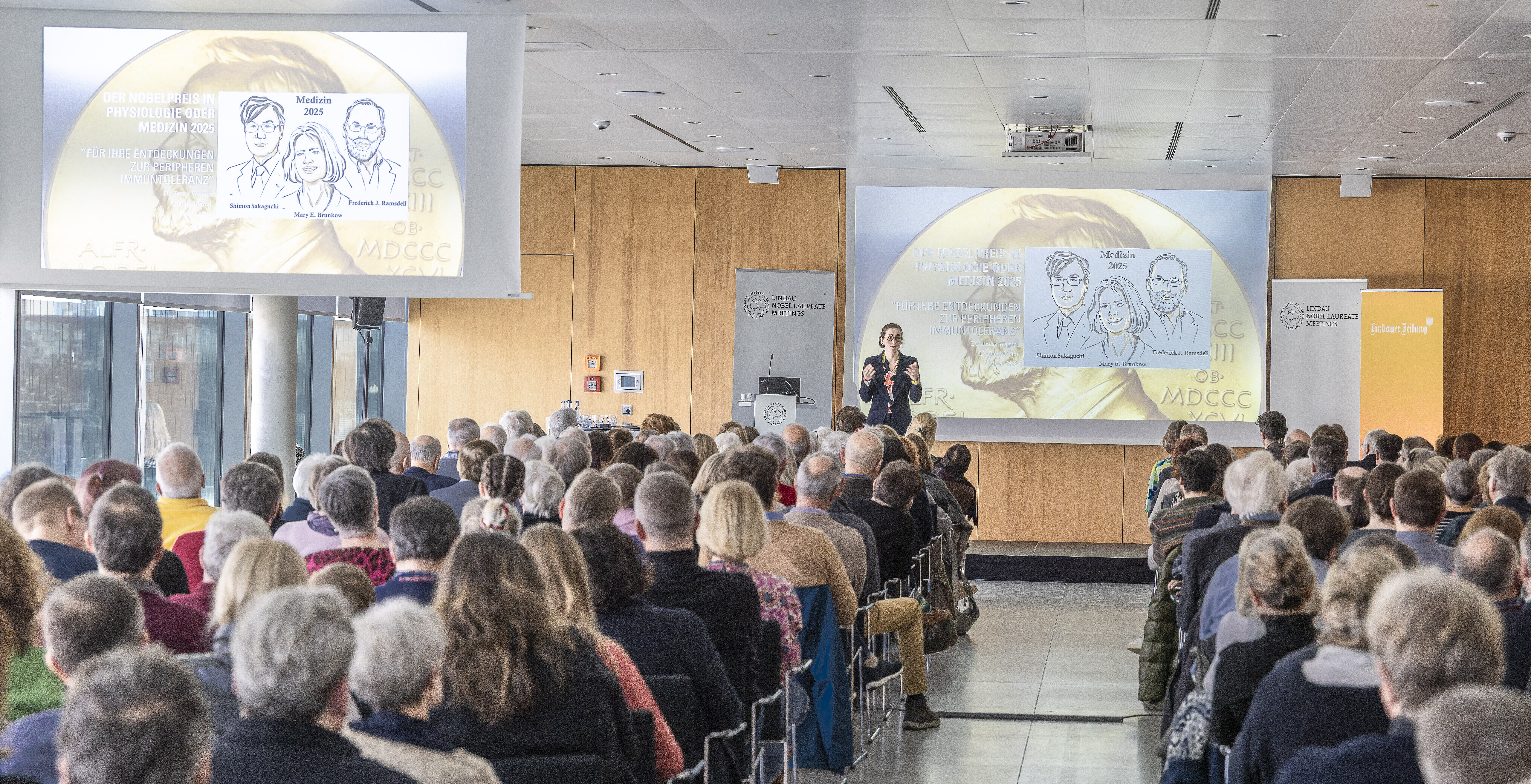 Große Ehre für NMI-Wissenschaftlerin Dr. Teresa Wagner: Bei der Lindau Matinee, einer Veranstaltung im Kontext des Lindauer Nobelpreisträger-Treffens, durfte sie vor ausgewählten Gästen erklären, wofür Mary E. Brunkow, Frederick J. Ramsdell und Shimon Sakaguchi im Jahr 2025 den „Nobelpreis für Physiologie oder Medizin“ bekommen haben.