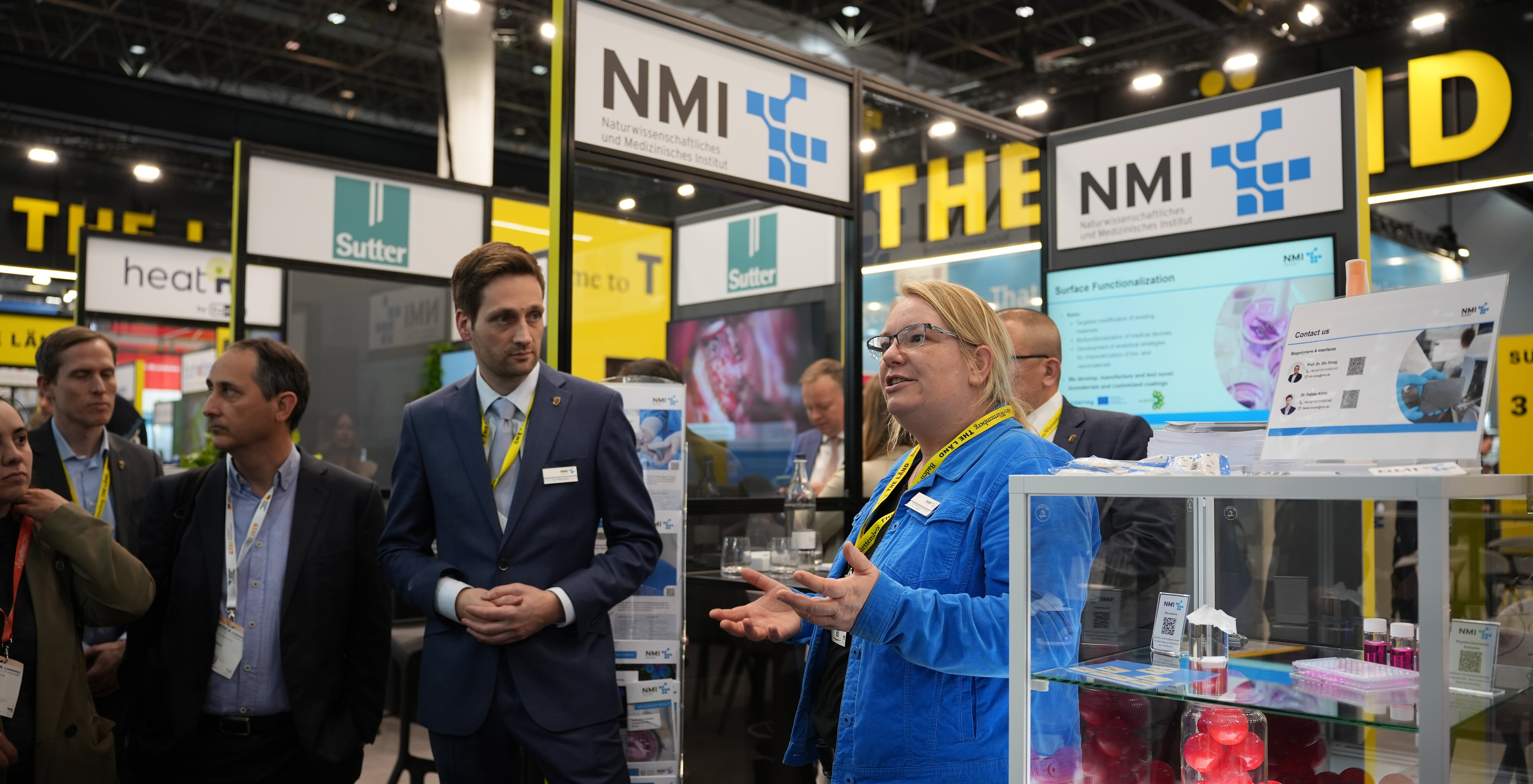 Four days at one of the world's largest medical technology trade fairs: Once again, the NMI was represented with a booth at MEDICA in Düsseldorf. Xin Xiong, Fabian Körte, Nicole Schneiderhan-Marra, and Alex Dulovic presented the institute's work and services. On one day, they were joined by Ulrike Passlack from our partner institute IMS Chips.
